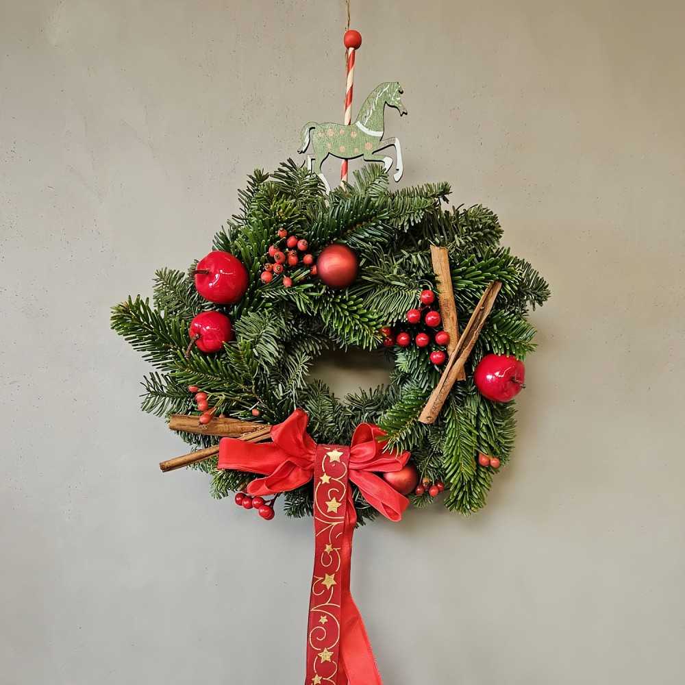 En hiver, nous sublimons tiges de conifères, baies rouges de houx et hellébores dans des couronnes et compositions joyeuses et colorées, à l’approche des fêtes.