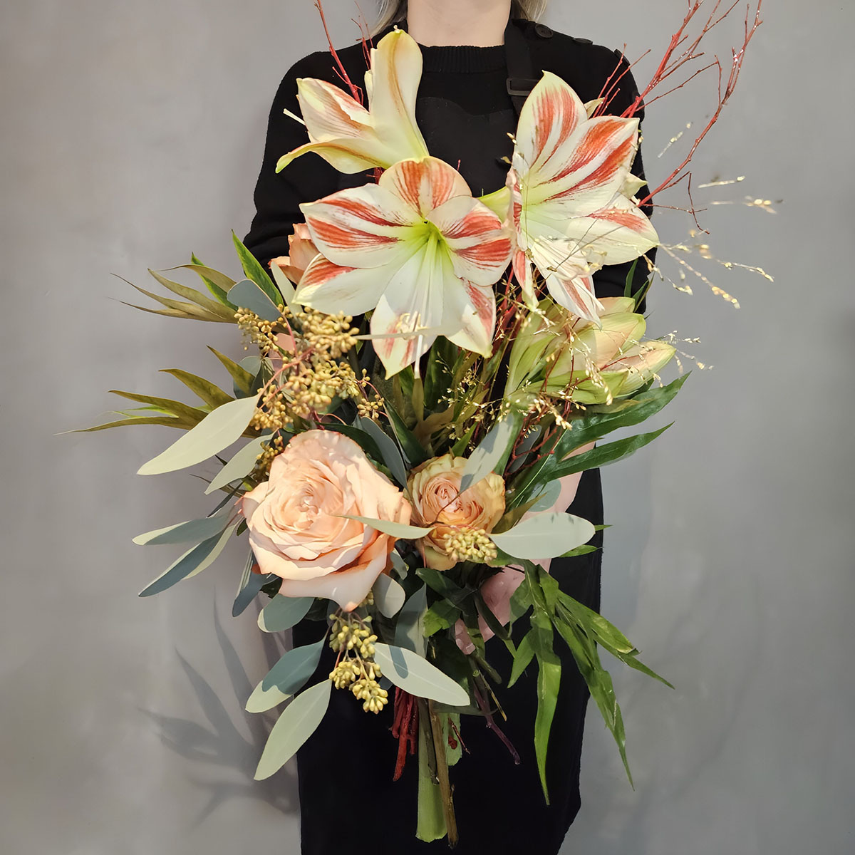 En automne, ce sont des farandoles de baies, de feuillages colorés, de fleurs aux tons chauds que nous transformons en œuvres d’art éphémères, romantiques ou modernes, mais toujours majestueuses.