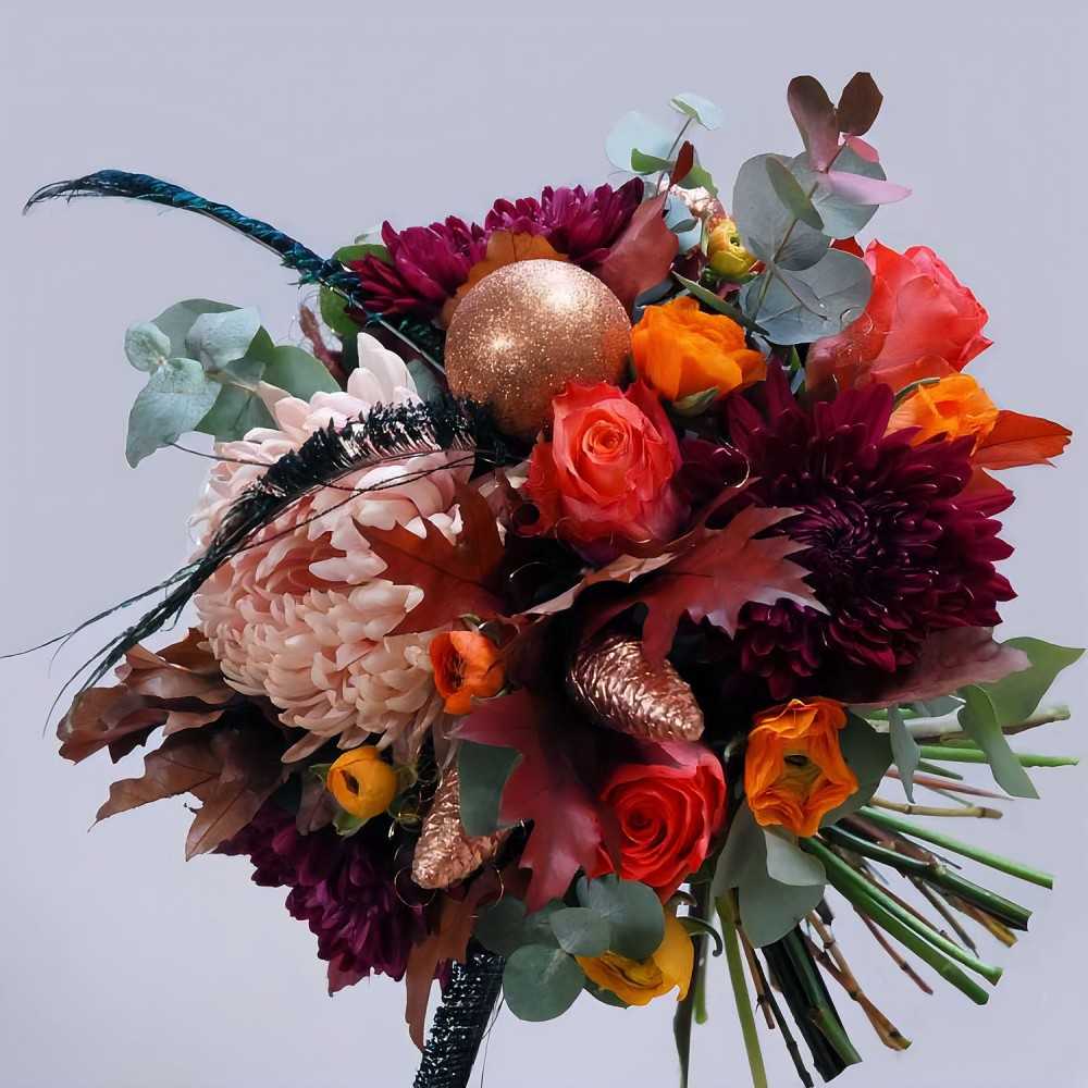 En automne, ce sont des farandoles de baies, de feuillages colorés, de fleurs aux tons chauds que nous transformons en œuvres d’art éphémères, romantiques ou modernes, mais toujours majestueuses.